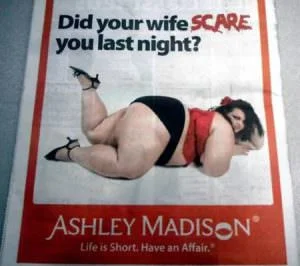 Ashley Madison is a website that provides discrete services to married men. Admittedly, anything they do, including advertisement, will be controversial. Hence they opted for the safest route. Why have boring sex with your fat wife, which here is supposed to mean old, boring, and non-sexy, when you can have an extramarital affair with a hot woman of your choice?