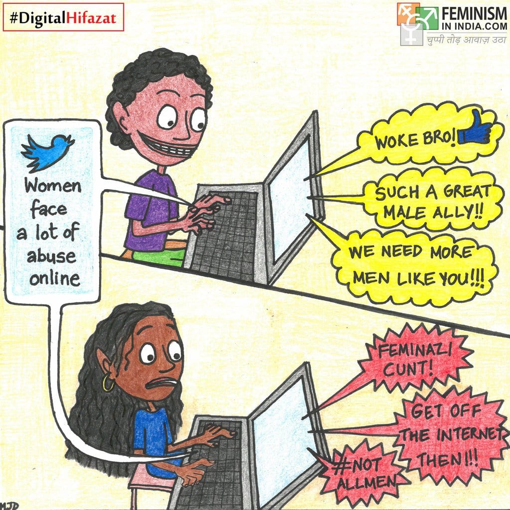 Watch our four videos to learn about how the internet is experienced differently by different communities, and then take a look at our three comics, created by our in-house artist Maitri Dore, all themed around the topic of online violence against women.
