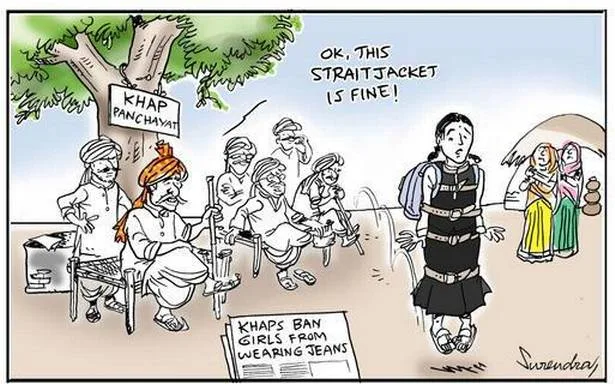 The first significant problem with the Khap Panchayats is their being the guardians of communal honour. This belief in having to protect the honour of the village and its men by jealously guarding the virtue of women places women as mere pawns of familial pride where one can be exchanged for another.