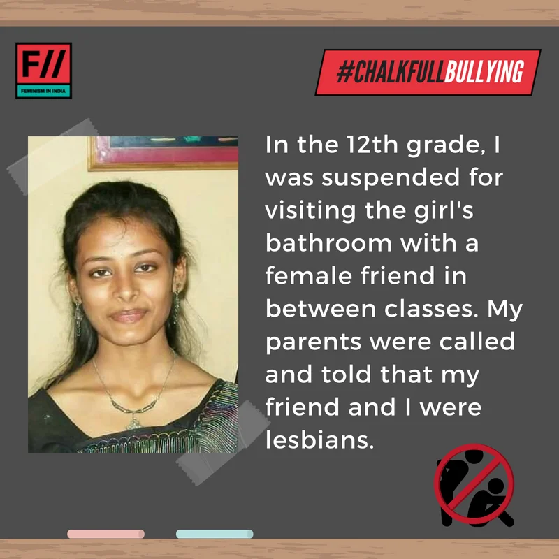 Editor’s Note: #ChalkfullBullying is a campaign that resolves to tell stories about gender-based bullying that happens in school, where students, especially non-binary and girl students, are subject to harassment, moral policing, severe disciplining and punishment, and routine bullying. Their fault being: not conforming to outdated gender stereotypes, the repercussions for which can scar us for a lifetime.