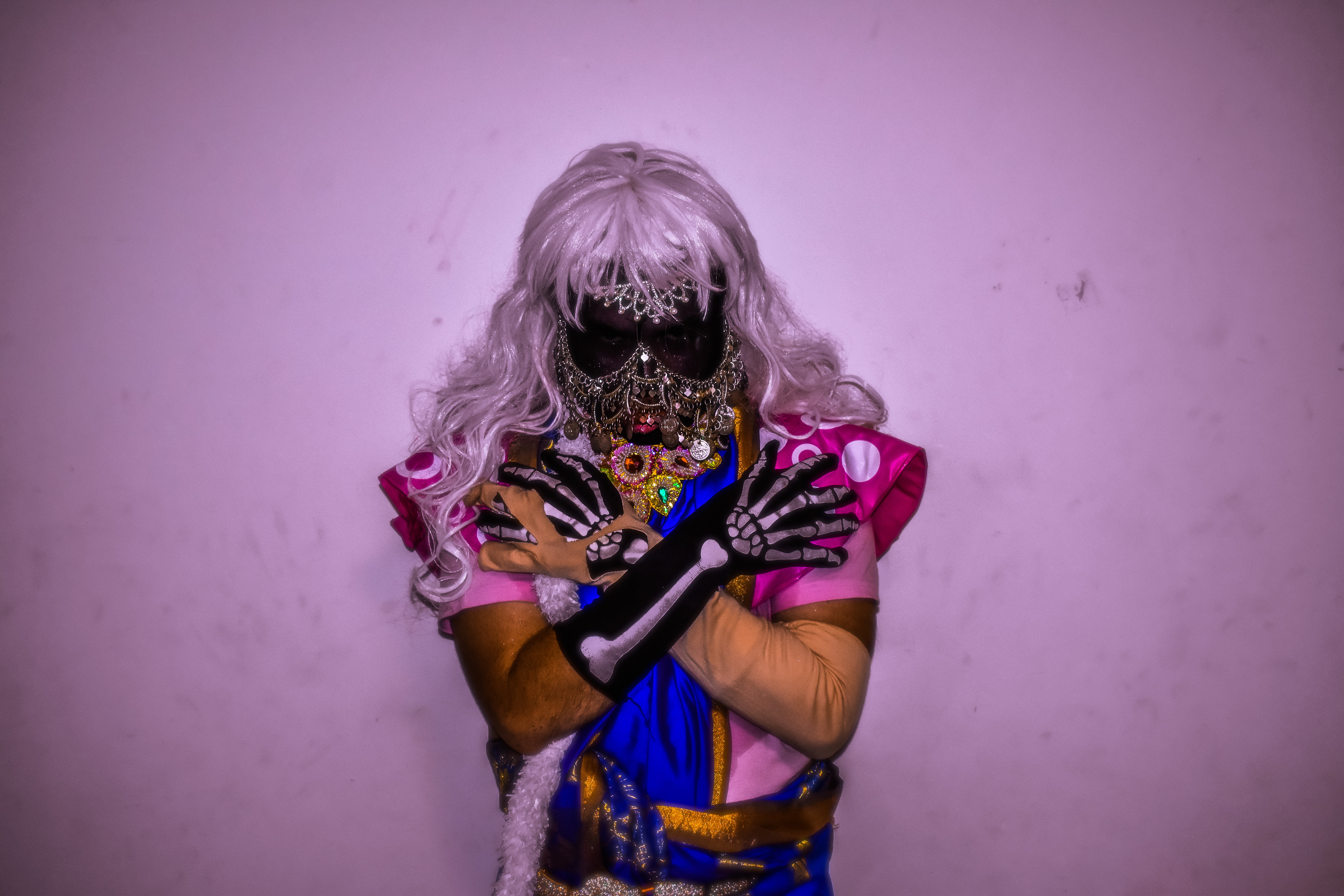 Patruni Chidananda Sastry: While learning performance art and talking about drag, I understood that drag is itself a performance art. This curiosity helped me explore drag further. But, unlike traditional drag, in which performers are praised for their elegance and beauty, I was attracted to tranimal style–also called “drag terrorism”. Tranimal drag is the drag of poor, available drag queens. It does not throw money on clothes and cosmetics, and works on only one belief: “this will do”. Tranimal drag performers make outfits themselves with available trash. They look vigorous, and they momentarily erase beauty and gender norms. When I perform tranimal I am liberated, I become the drag queen who doesn’t wear heels, but performs bare-footed for the less privileged community that I try to remind myself of.