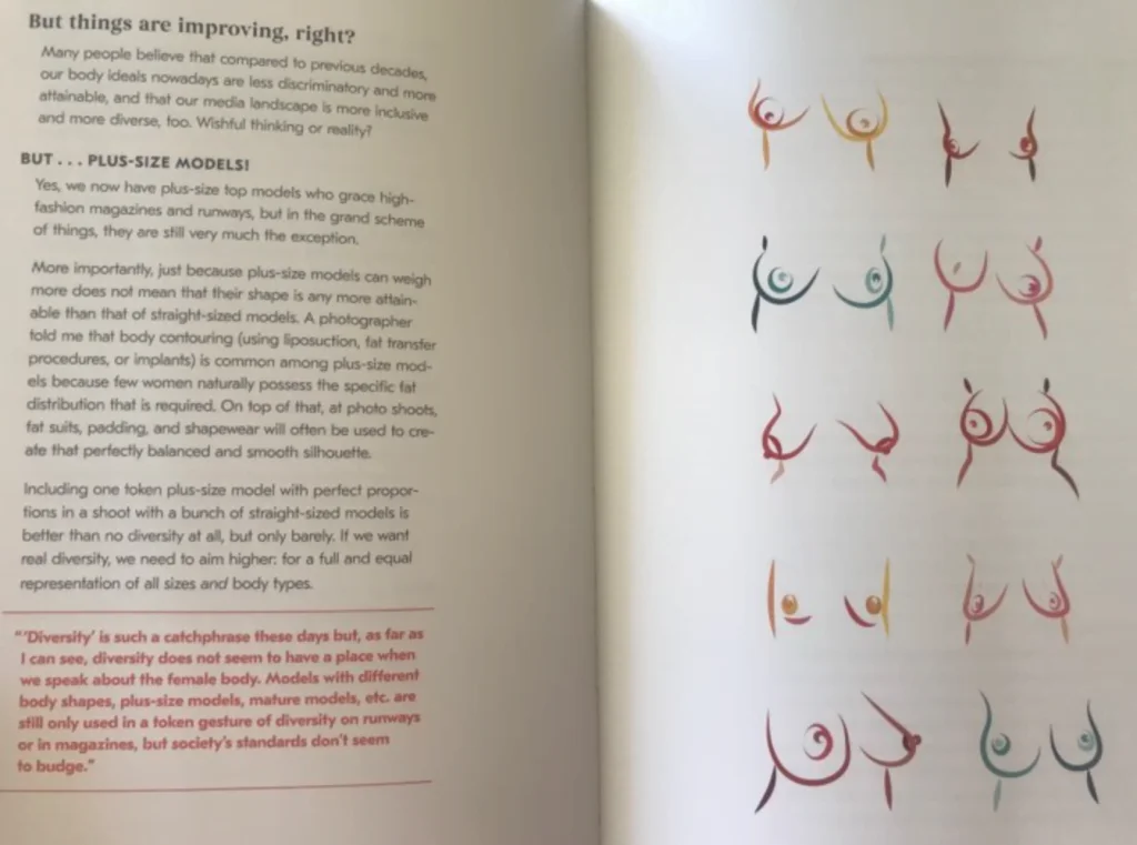 Her chapter on Media talks about how the ‘beauty blast’ from social media platforms, pressurizes women to look attractive. She explains the rift between the sexually objectified images versus the sexually empowered ones. In her opinion, while they may seem similar on the surface, one needs to understand that a sexual photo or video is not necessarily sexually objectifying. However, nude selfies as the poster symbol for body-image activism again reinforces that sexuality is the only facet, a woman must be celebrated for.