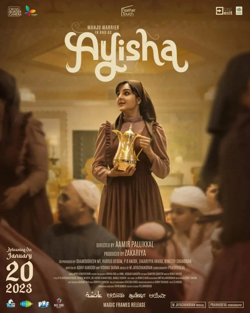Director’s choice of casting Manju Warrier as Nilambur Ayisha was a significant decision in the making of Ayisha. There are various similarities in the lives of both Warrier and Ayisha since both were separated from their marriage and accosted the offences of the misogynistic public for being in the field which ‘the convention’ doesn’t allow.