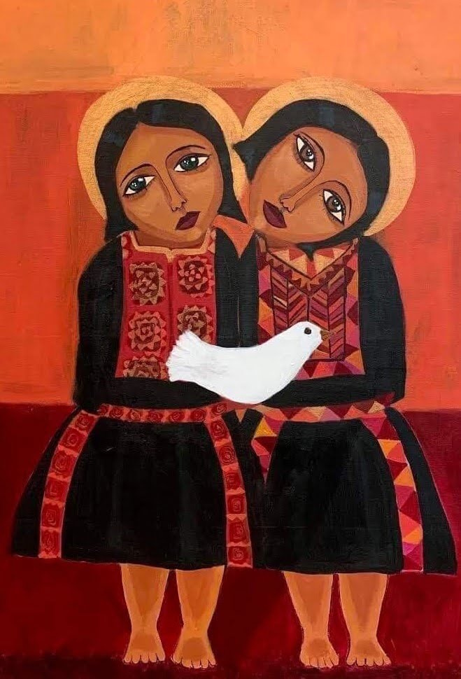 Mattar’s art predominantly depicts Palestinian women. Drawing attention to dark on-the-ground realities, Mattar claims that the women in her paintings are freer than her own reality; while she lived in Gaza, Mattar’s travel and freedom was harshly limited due to the occupation.