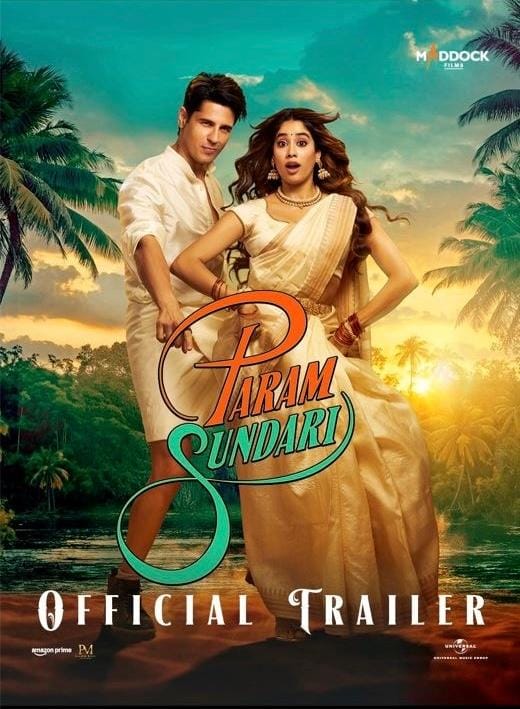 Param Sundari, starring Sidharth Malhotra and Janhvi Kapoor as the titular Param and Sundari, is an uninspired Chennai Express knock-off that draws on the same tired stereotypes as the original and invests more time in caricaturising its South Indian characters than in the plot. Param is a Delhi-based Punjabi investor. He seeks to invest in an app called Find Your Soulmate, which tells him his soulmate is a Malayali woman called Sundari who lives in Alappuzha and runs a homestay.