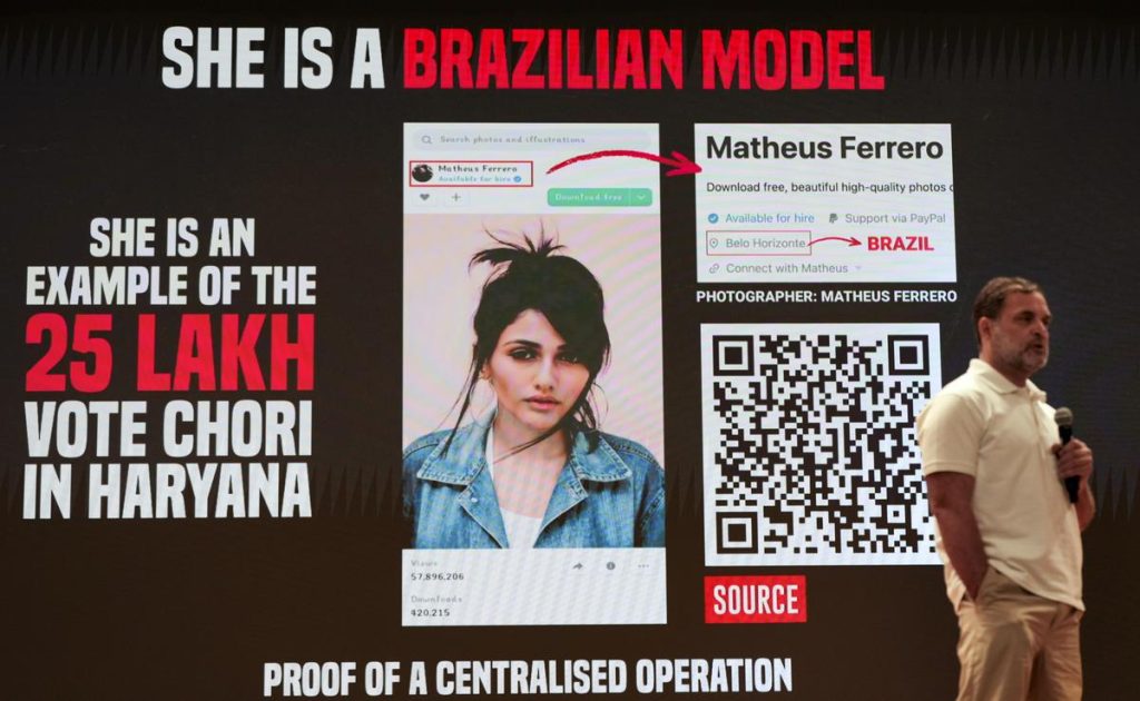 One instance of discrepancy mentioned by Gandhi during the 2024 Haryana election involved 223 people on the electoral rolls with the same woman’s image. In another example, he noted, a Brazilian woman’s stock images were also used in the rolls for 22 voters across 10 polling booths. As for the former claim, an Indian Express report found that this issue has long existed in that particular constituency. While people seem to possess Voter IDs with their correct photographs, their picture in the voter rolls is of the same woman, and this issue hasn’t been resolved following numerous complaints.