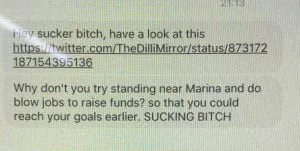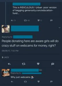The abusive messages and tweets told her that trying to crowdfund her education was akin to sex work, and how that would be a quicker way to earn the money that she needed. Of course, sex work is seen as the most degrading profession to insult one with, and these abusive messages not only attack the person in question, but sex workers as well.