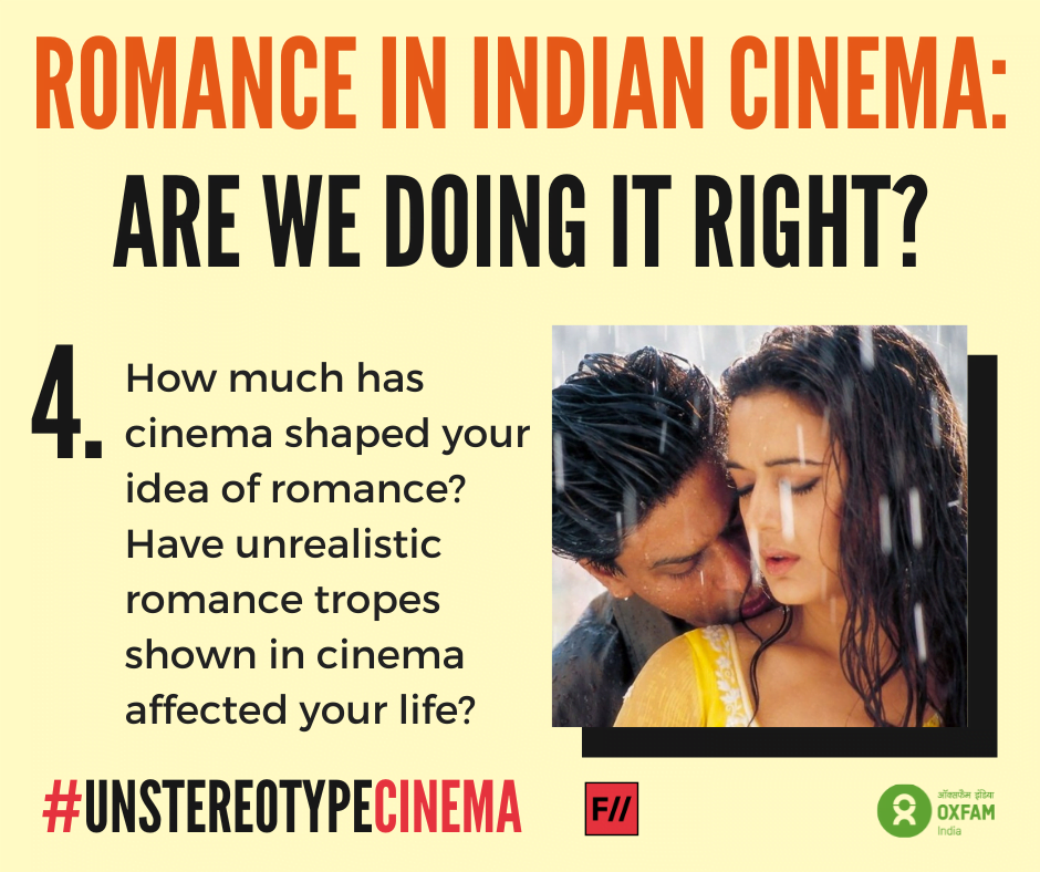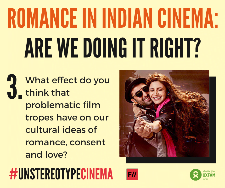 Mainstream cinema continues to romanticize stalking and valourize unhealthy and abusive relationships as “romantic ones”, leading to twisted understandings of love, sex and consent. Violence against women is often a plot point for heroes to prove their masculinity and heroism, rather than focussing on the woman’s experience of it.